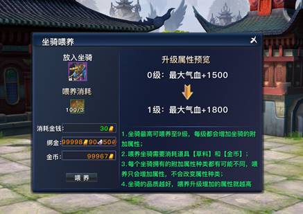 除了绿色产出的驯化系统,本次坐骑系统改革更是为坐骑新增了强力的属性光环!每个坐骑都拥有属性光环技能,并可以前往五方城驭兽人(474,327)处给心爱的坐骑喂食仙草,升级属性光环!属性光环在使用过坐骑后即可永久存在于角色buff光环效果中,非骑乘状态时也依然有效。更换坐骑即更换buff效果。