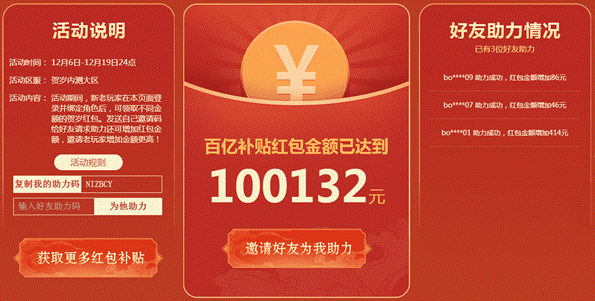 2. 小提示:仅在活动时间内(12月6日-12月19日23点)进行助力才能增加红包金额哦。