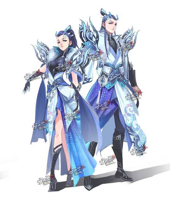 “蛟龙之怒”作为全区首件神甲时装,其造型必定要十分精美。美术组经过多方的资料查阅与研究,最终确定了它的设计方向。从原画可以清晰的分析出,新时装以中国古代神兽“龙”为原型,结合古装造型设计而成。龙王在神话传说中是统领水族的王,掌管兴云降雨,属于四灵之一。传说龙能行云布雨、消灾降福,象征祥瑞。“蛟龙之怒”的里衣以黑色为主,衣边浮现淡蓝色龙纹装饰,内敛而高端,与外衣闪亮的颜色形成鲜明的对比。大面积的龙鳞附着在长袍上,随着摆动可折射出七彩之光。白色鬃毛从领口披肩而下,贵气逼人。