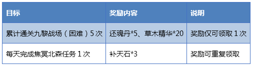 4.每天完成焦暝北森任务的奖励可重复领取;