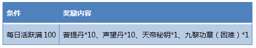 3.每日活跃需满足100点后,才可领取活跃奖励;