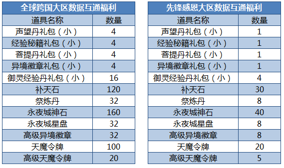 活动内容:原【全球跨国大区】、【先锋感恩大区】用户,凡等级高于55级,且2月1日至3月1日24点有过登录的角色,即领取数据互通福利奖励!每个角色总共可以领取5次奖励!