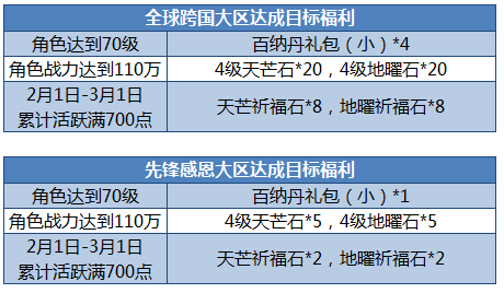 2.本次活动角色等级满足70级可参与活动,每个角色每个目标奖励仅可领取1份;